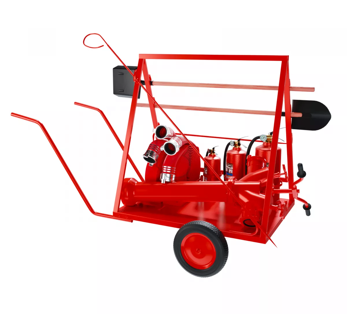Все необходимые для тушения средства могут быть размещены на тележке и ее элементах.